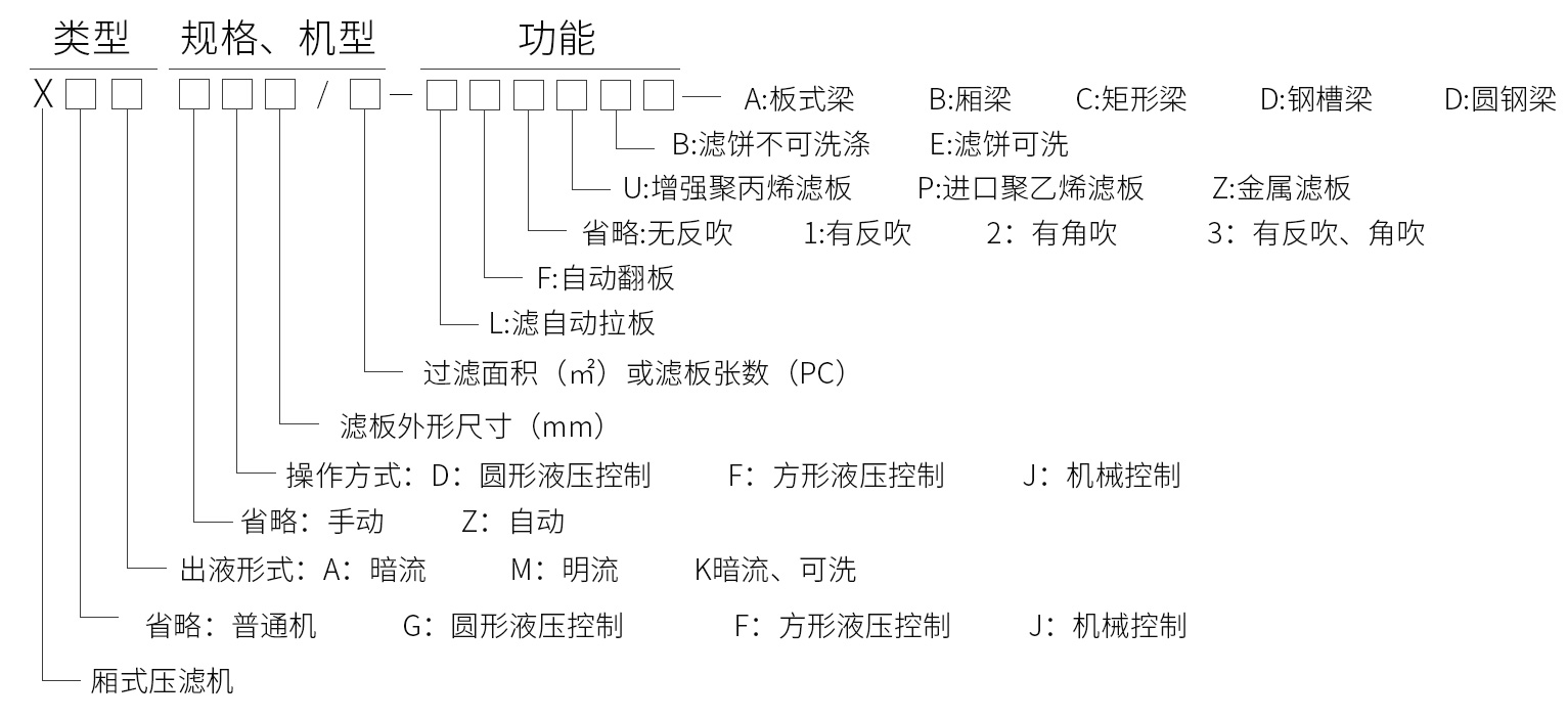 金凱地壓濾機(jī)設(shè)備型號(hào)說明,如下圖